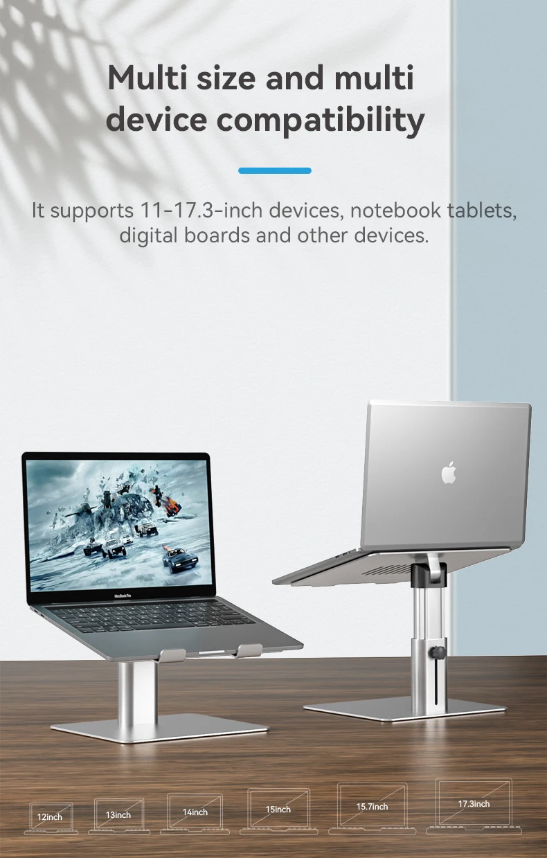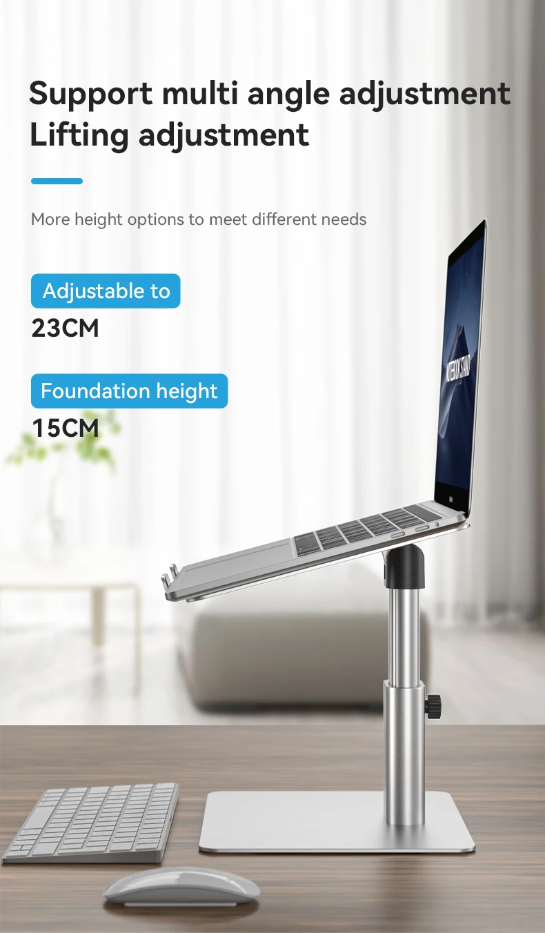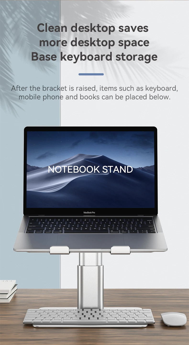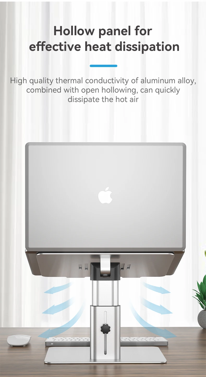 Durable and Stylish Design – Crafted from high-quality aluminium, this elevatable laptop bracket is not only sturdy but also adds a sleek touch to your workspace. Its portable design makes it perfect for both home and office use, ensuring you can work efficiently wherever you go.